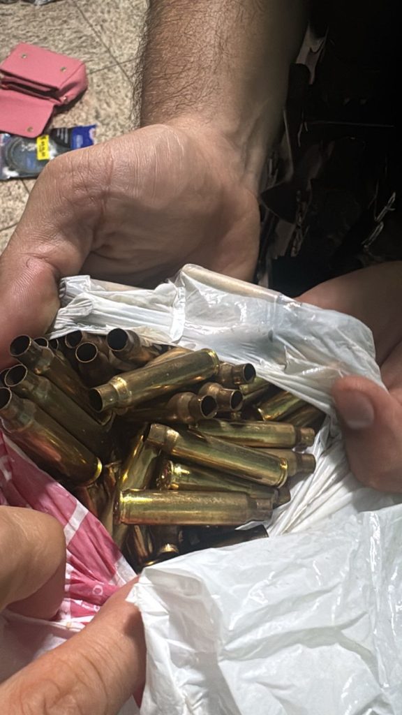 No local da denúncia, os policiais encontraram um cenário que confirma o pânico relatado pelos moradores: dezenas de cartuchos deflagrados espalhados pelo chão e até sobre o telhado das casas. Dentro de uma residência, foi desarticulada uma base logística que contava com: