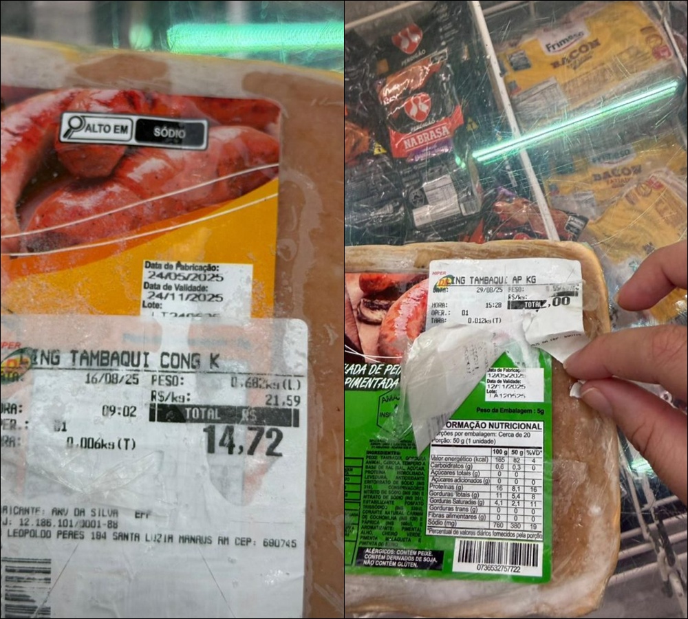 O setor de proteínas apresentou o cenário mais preocupante durante a vistoria das autoridades. Segundo o chefe de fiscalização Pedro Malta, o ambiente do açougue exalava um odor desagradável e abrigava carnes armazenadas sem a refrigeração necessária. De acordo com o relatório técnico, os fiscais encontraram frangos, linguiças, salsichas e carnes bovinas em condições precárias de conservação. Por esse motivo, itens como pães de alho, manteigas e latas de feijoada também entraram na lista de descarte por estarem fora do período de validade. Por outro lado, a presença de produtos descongelados fora do freezer evidenciou a falta de controle térmico no estabelecimento comercial.